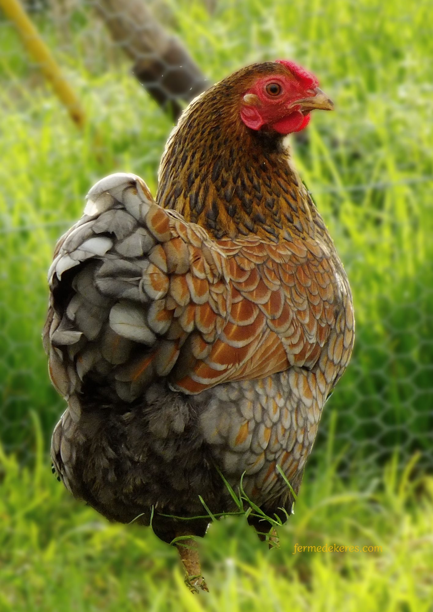 Comme chez la grande il existe de nombreuses variétés de wyandottes naines. A Keres je n'en n'élève plus que deux : le doré liseré bleu et le doré liseré noir.